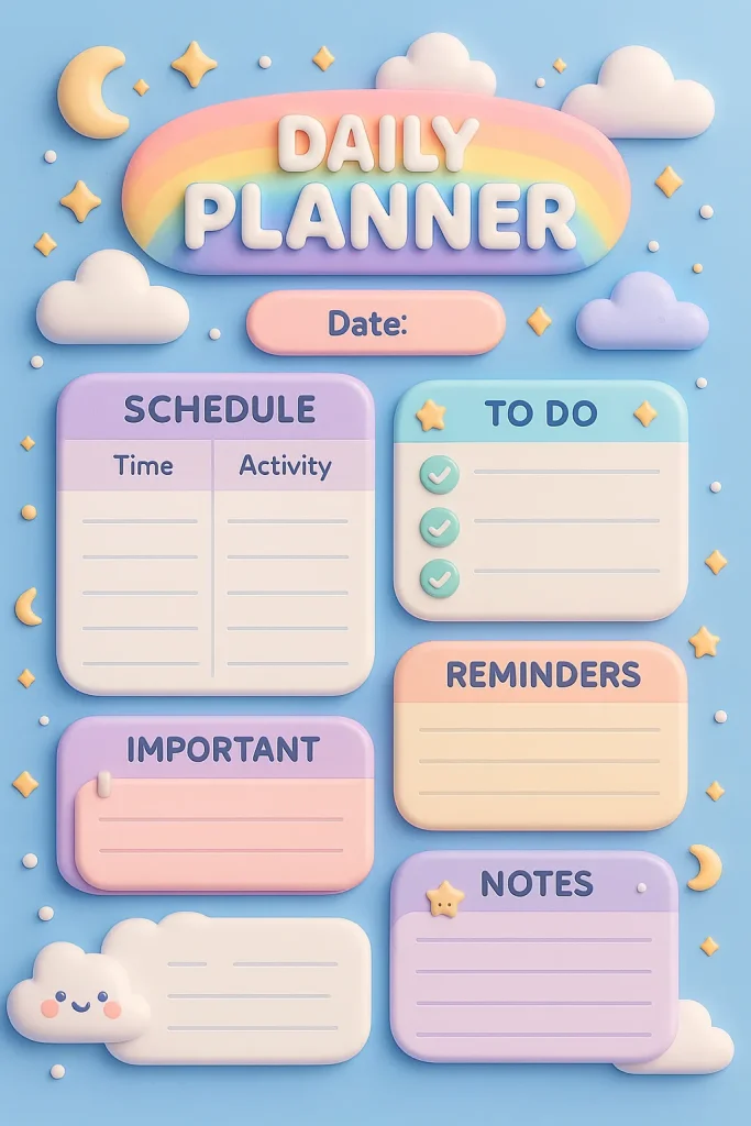 With one simple prompt, a blank page transforms into a complete, structured planner layout.