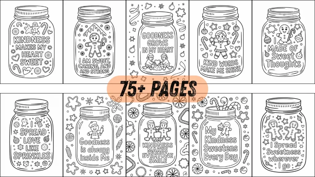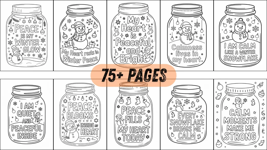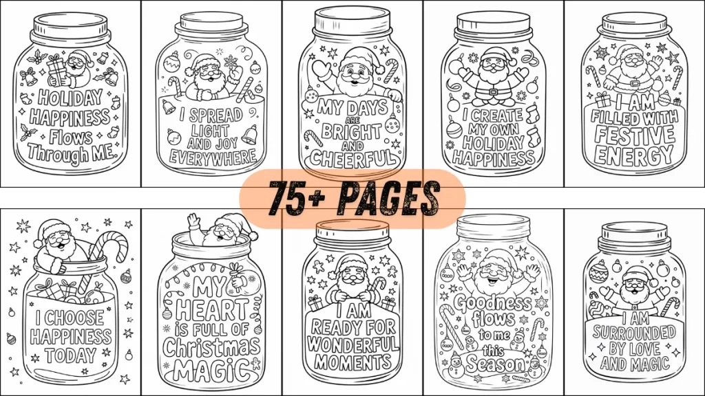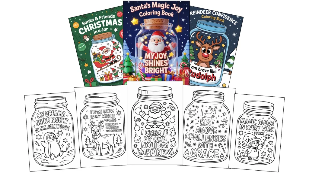 - The combination of a cozy Christmas jar, joyful festive scenes, and a gentle affirmation hits buyers right in the heart. Parents instantly feel the warmth, kids feel the excitement, and shoppers feel the comfort of gifting something meaningful. This isn’t just “coloring pages” — it’s a holiday experience filled with positivity, calm, gratitude, and Christmas charm that families want right now.